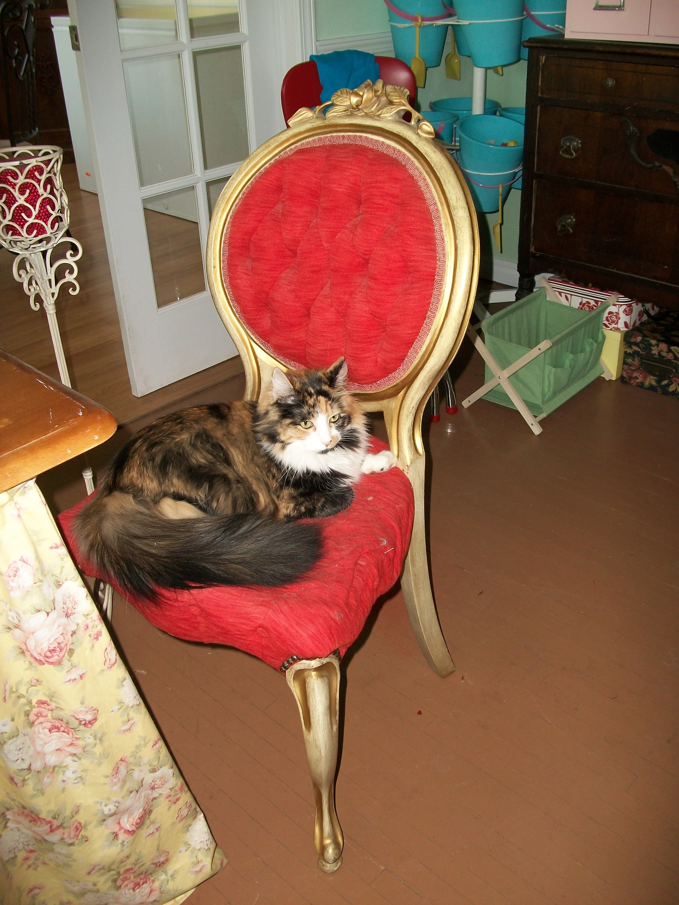 I couldn’t leave out Callie. She looks fat, but she’s just furry. This table is an old kitchen table that my wonderful, amazing husband refinished for me.