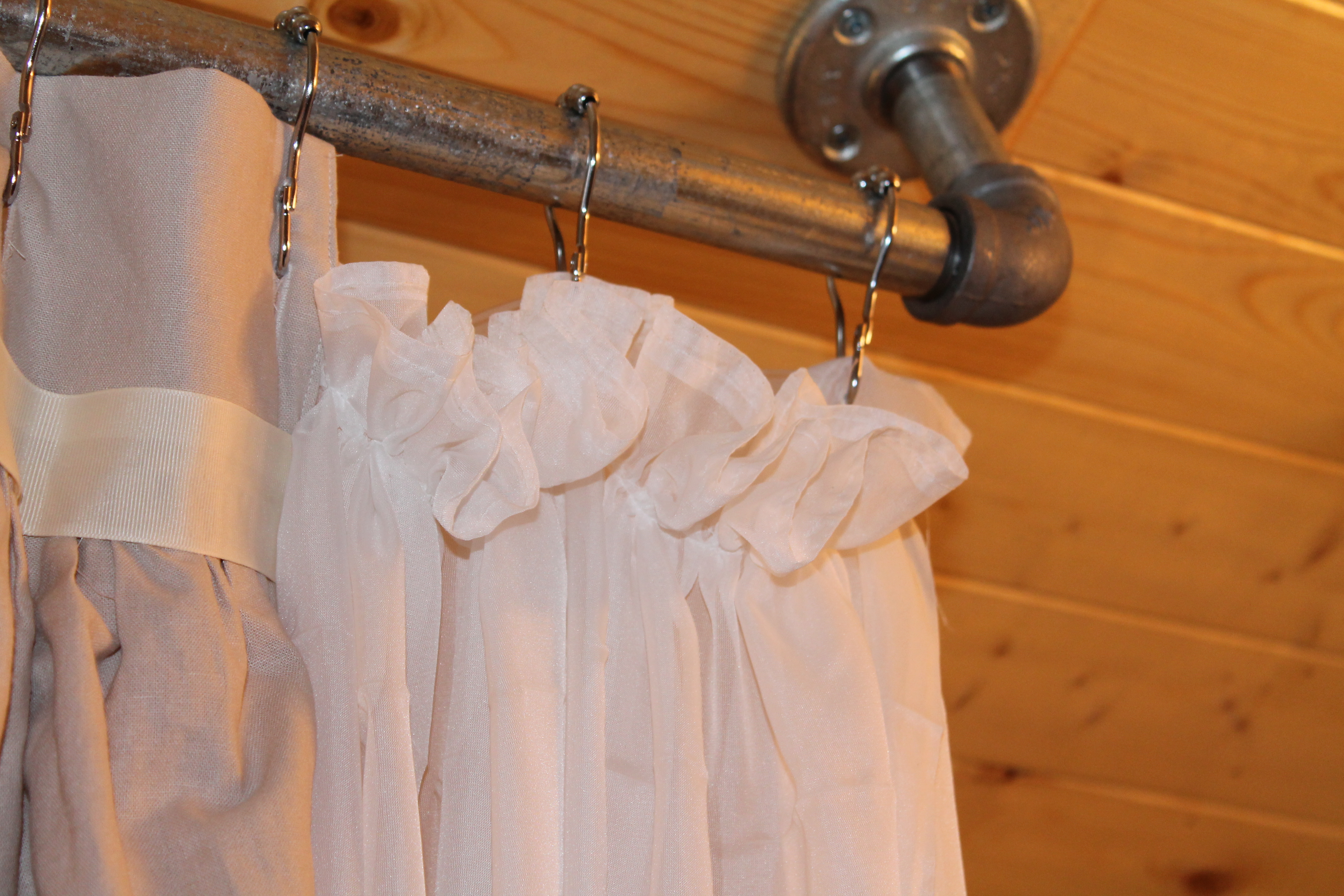 Around the other side, I have two window seats with storage underneath, and beside them is a shelf to hold mason jars. They are full of odds and ends that I use for crafting and home decor. It is amazing how much stuff you collect over the years, and these jars are stacked two deep! The cart is from Ikea and holds fabric I’m working on right now. The closet doors were old and heavy, like Thor’s hammer heavy, so we took them out, and I sewed a curtain to cover the closet. Next to that is a shelf for my fabric. I keep it folded on comic book boards, so he built it to dimension.