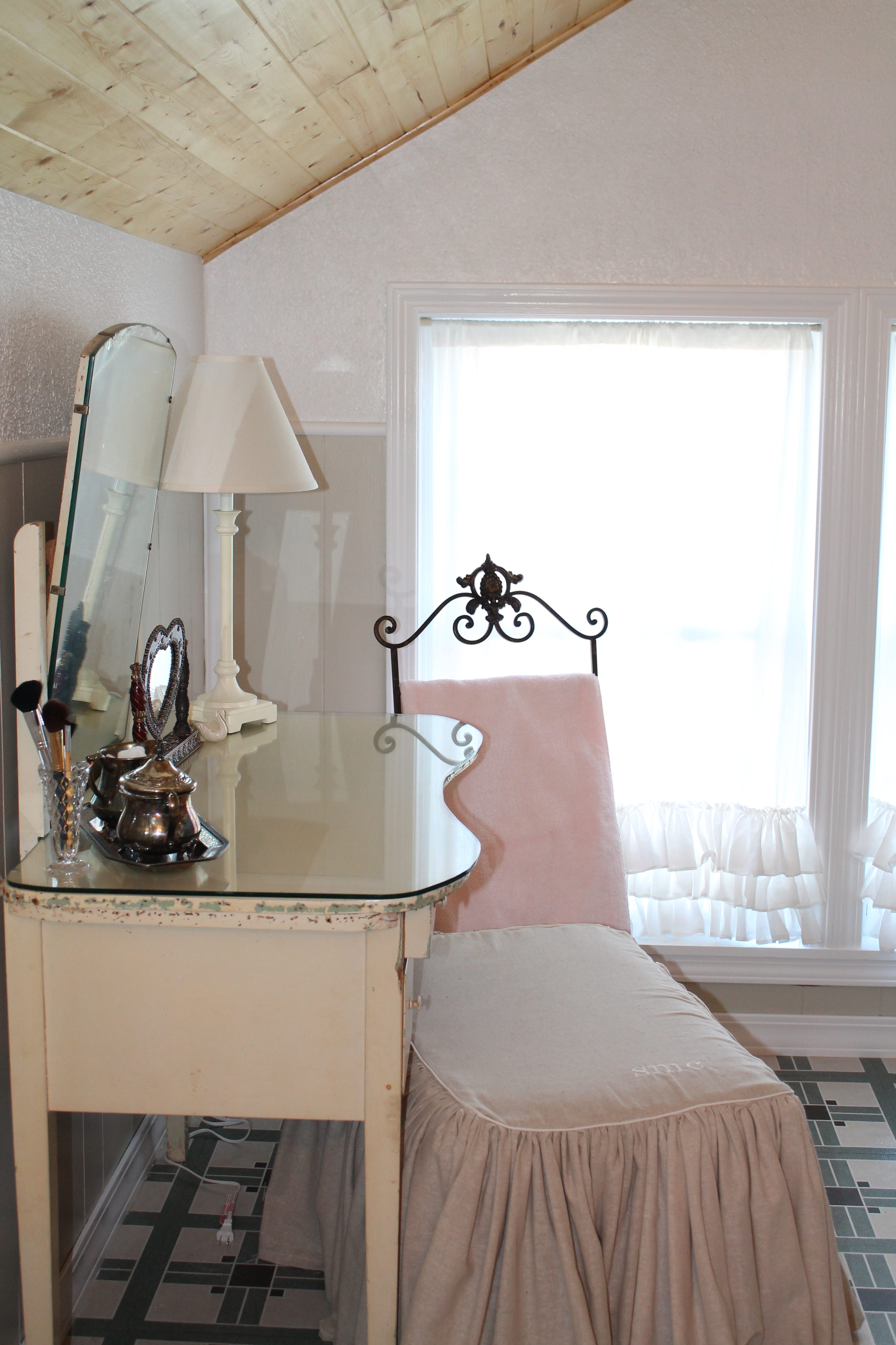 We didn’t want to do anything to cover the windows, so he built a window seat for me. He angled the bottom to allow the air vent to work properly.