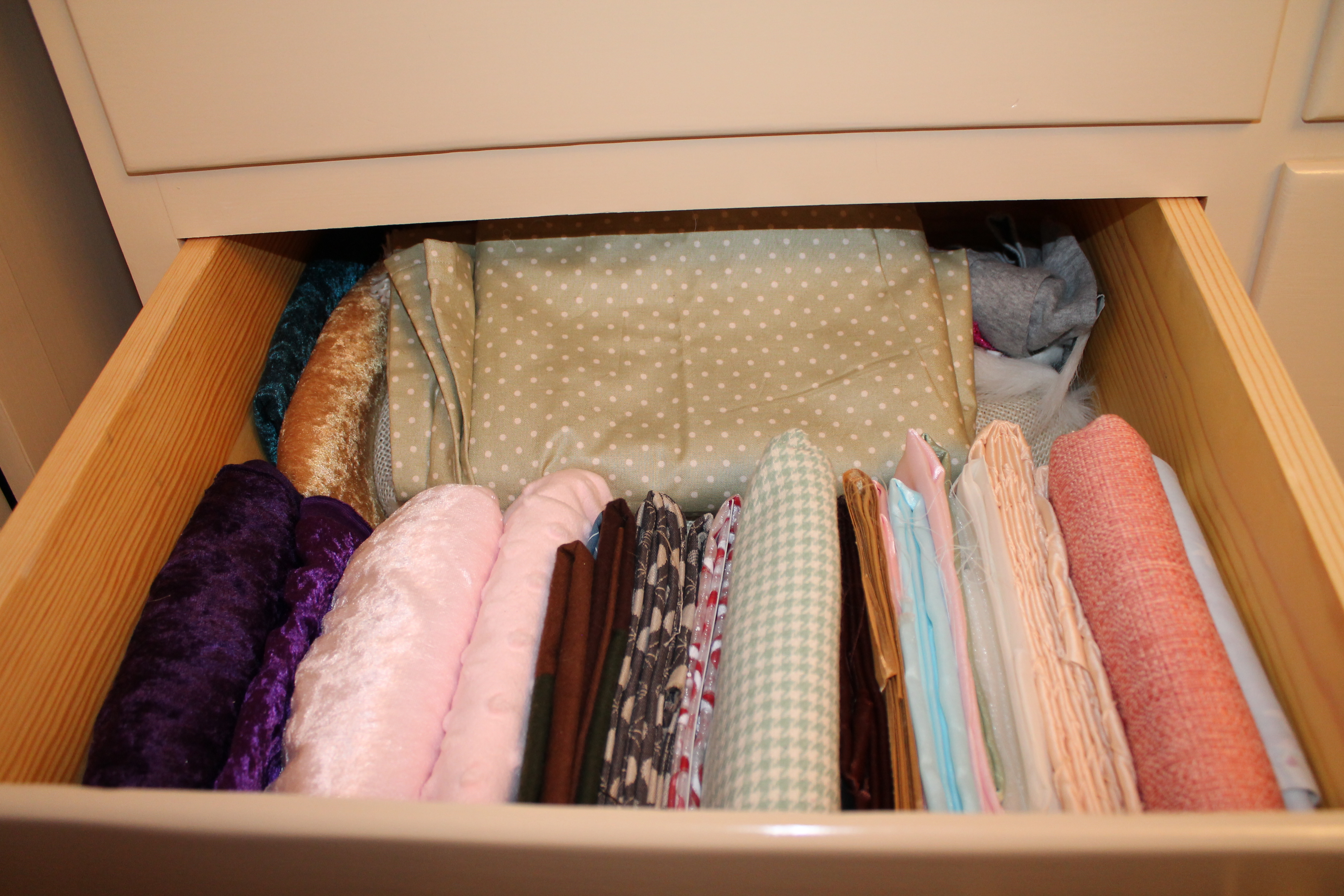 This is the view from a different corner. The cart holds my paper, my Cricut and Silhouette, dies, stamps, and paper cutters. See the little wheels at the bottom? Yeah, my husband was smart enough to know we might need to move it to get something into the room, so he added wheels. The drawers are deep and sturdy. the cabinet next to it is storage for all kinds of things, mostly blanks and stabilizers for embroidery. The other cabinet holds fabric and polyfill, and the baskets hold glue, tape, paper bags, and other things.